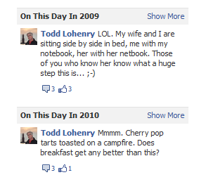Facebook has a cute little feature now that I never noticed before; ‘On this day in XXXX’. I like it…