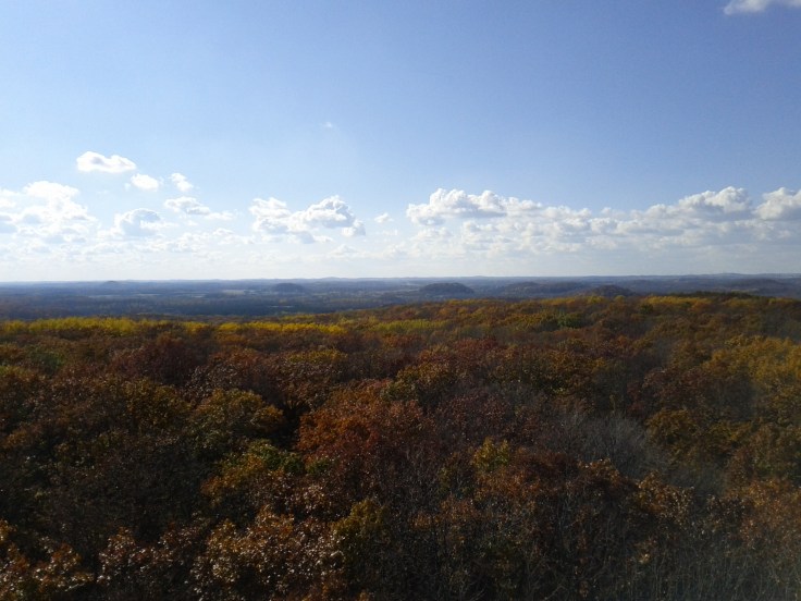 …for nearly 15 years now but never took the time to explore the Kettle Moraine until last Saturday. It’s a pretty amazing place, although the fall foliage is pretty tapped out for now. Here’s a view from the top of Parnell Tower. Make a note now to check it out next year…