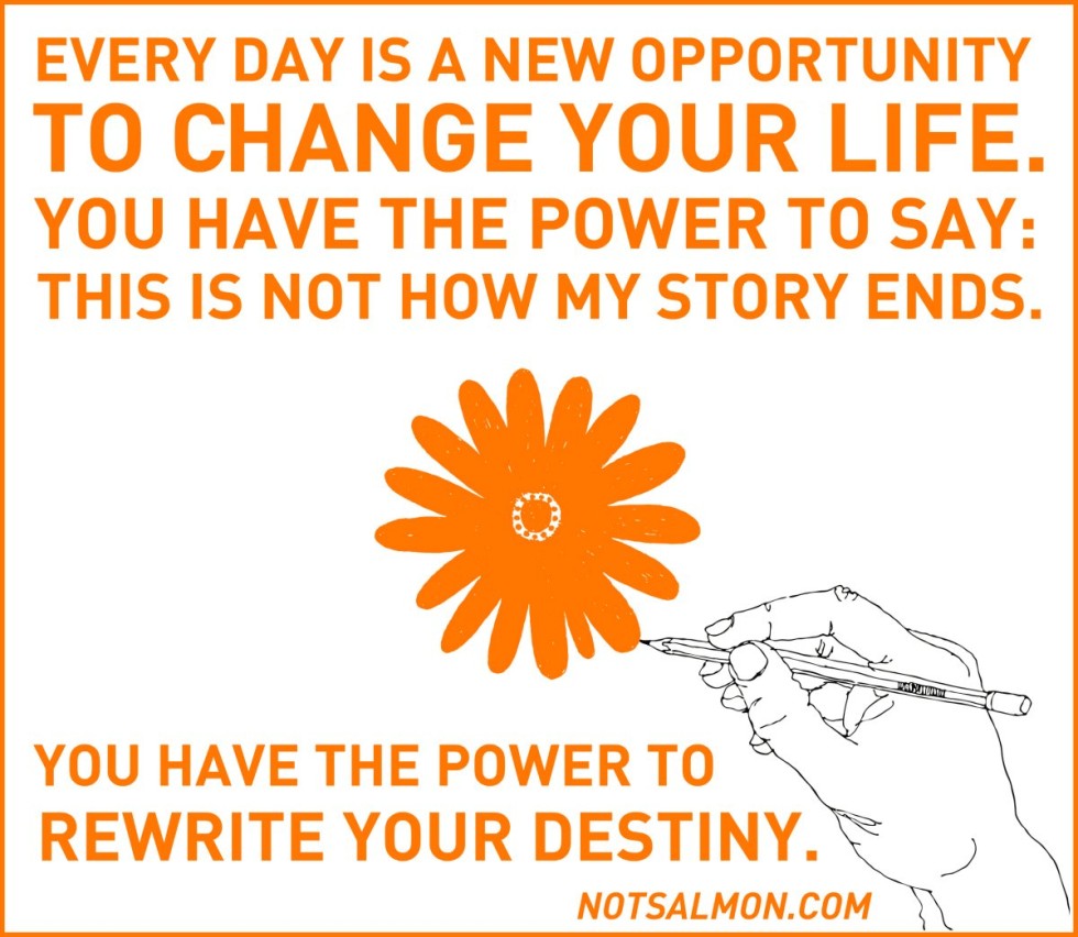 Every day is a new opportunity to change your life Every day is a new opportunity to change your life. You have the power to say this is not how my story ends. new opportunity destiny poster – notsalmon Rate this:Sharing is caring!!! Share on Facebook (Opens in new window) Facebook Share on Bluesky (Opens in new window) Bluesky Share on LinkedIn (Opens in new window) LinkedIn Share on Mastodon (Opens in new window) Mastodon Share on Nextdoor (Opens in new window) Nextdoor Share on Pinterest (Opens in new window) Pinterest Share on Reddit (Opens in new window) Reddit Share on Threads (Opens in new window) Threads Share on Tumblr (Opens in new window) Tumblr Share on WhatsApp (Opens in new window) WhatsApp Share on X (Opens in new window) X Like Loading... Related What do you think? Cancel reply