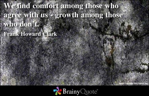 “We find comfort among those who agree with us – growth among those who don’t.” Frank Howard Clark. via We find comfort among those who agree with us – growth among….
