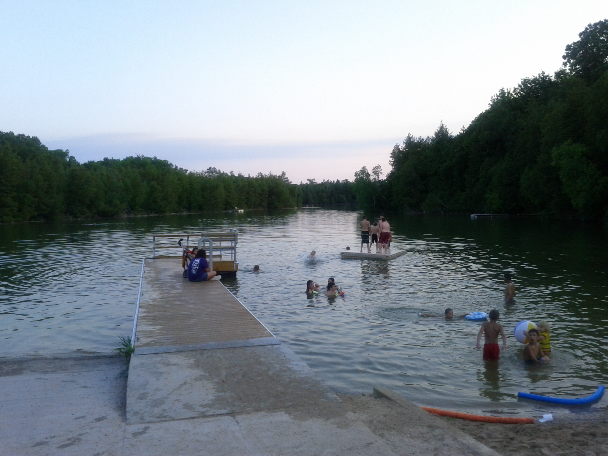 We live in an area that is naturally air conditioned by Lake Michigan — they call our town ‘Penguin City’. Frequently, there is a difference of 10 degrees celsius between our town and the surrounding area so people come here to cool off. Yesterday, however, it was very warm for us — almost 30 of your degrees — so the thought of the old swimming hole was very inviting indeed. It was nice to go there and cool down after an afternoon of soccer practice…
