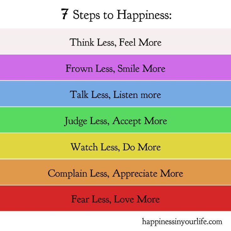 Happiness may be somewhat more difficult to possess than these seven simple steps… however, they will certainly move you in the right direction.