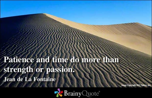 I believe this is true, Passion tends to make me want to rush out and answer every idea that pops to mind immediately, and strength makes me think I will “just do it” like that Nike Swoosh. But Patience, is something I am working toward, a very uphill battle, but as you struggle for Patience, Time is Passing #Hurray for that :)