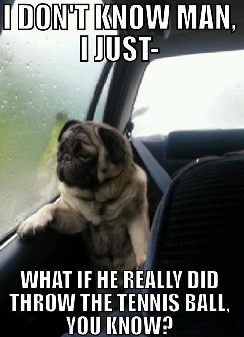 Full story at: Introspective Pug Is Introspective About Being A Pug.