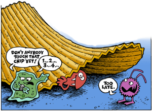 It’s scientifically proven. Well, actually it’s scientifically proven that if a floor is covered in salmonella or E. Coli, your food will be covered in salmonella or E. Coli, even if they touch for a split second. But, and here’s the kicker, the same study showed no significant evidence of contamination on public flooring in general. Good save, Science.