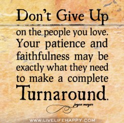 Don’t give up on the people you love. Your patience and faithfulness may be exactly what they need to make a complete turnaround. -Joyce Meyers What do you think? Cancel reply