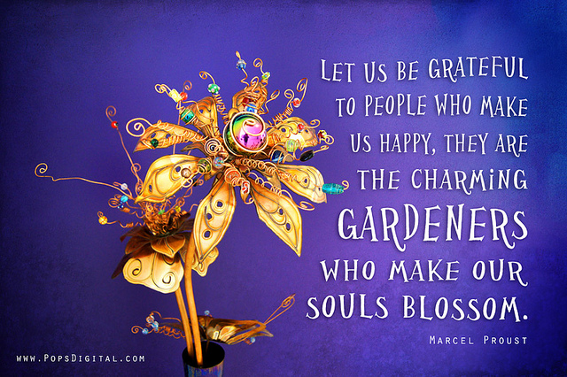 I posted the photo of this flower a little more than a week ago (Floral Fancy) and at the time I thought this quirky metal sculpture could use an appropriate quote. I added one from Marcel Proust that I thought fitting. If you like it, please pass it around.