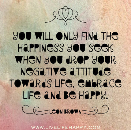 You will only find the happiness you seek when you drop your negative attitude towards life, embrace life and be happy. -Leon Brown