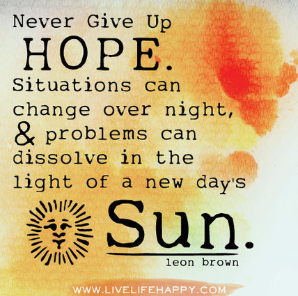 Never give up hope. Situations can change over night, problems can dissolve in the light of a new day’s sun. -Leon Brown