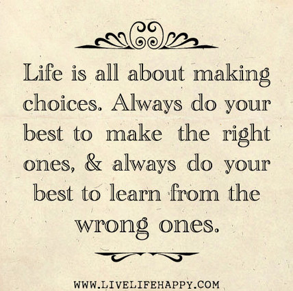 Life is all about making choices. Always do your best to make the right ones, and always do your best to learn from the wrong ones.