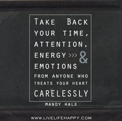 Take back your time, attention, energy, and emotions from anyone who treats your heart carelessly. “Take back your time, attention, energy, and emotions from anyone who treats your heart carelessly.”