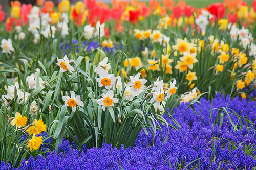 A stunning display of colorful spring flowers at West of the Lake Gardens in Manitowoc, WI. A colorful image from photographer Bill Pevlor.