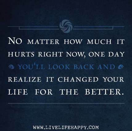 No matter how much it hurts right now. one day you’ll look back and realize it changed your life for the better.