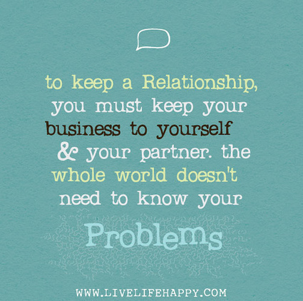 To keep a relationship, you must keep your business to yourself and your partner. The whole world doesn’t need to know your problems.