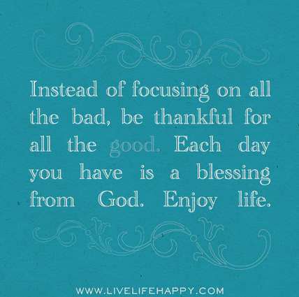 Instead of focusing on all the bad, be thankful for all the good. Each day you have is a blessing from God. Enjoy life.