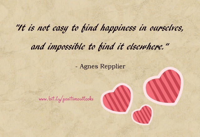 It is not easy to find happiness in ourselves, and impossible to find it elsewhere. — Agnes Repplier