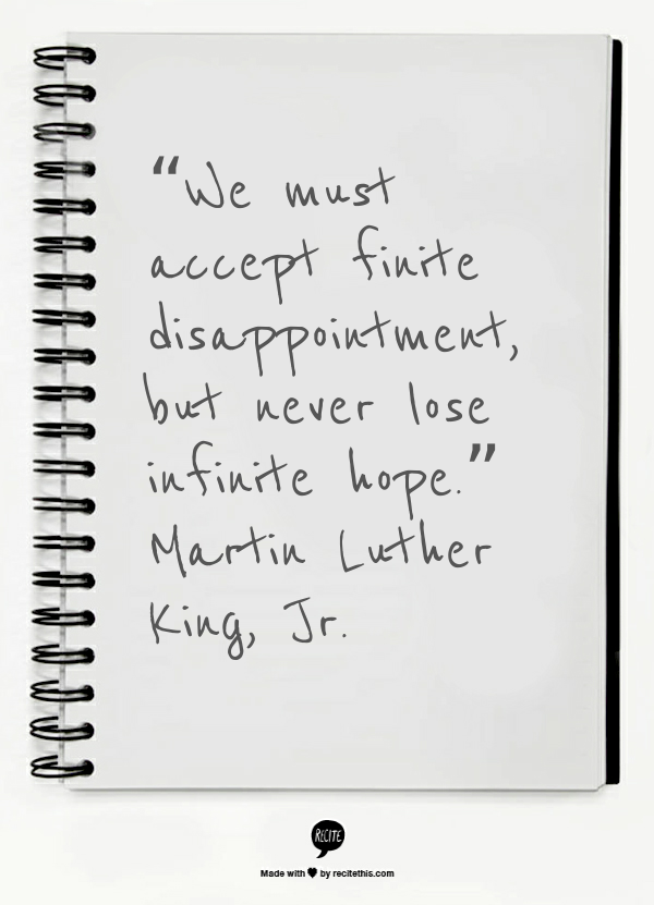 recite-17408–972237821-dg52kz “We must accept finite disappointment, but never lose infinite hope.” ~Martin Luther King, Jr. What do you think? Cancel reply