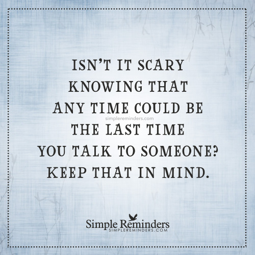 Isn’t it scary “Isn’t it scary knowing that any time could be the last time you talk to someone? Keep that in mind.” — Unknown Author Source: “Isn’t it scary knowing that any time could be the… Rate this:Sharing is caring!!! Click to share on Facebook (Opens in new window) Facebook Click to share on Bluesky (Opens in new window) Bluesky Click to share on LinkedIn (Opens in new window) LinkedIn Click to share on Mastodon (Opens in new window) Mastodon Click to share on Nextdoor (Opens in new window) Nextdoor Click to share on Pinterest (Opens in new window) Pinterest Click to share on Reddit (Opens in new window) Reddit Click to share on Threads (Opens in new window) Threads Click to share on Tumblr (Opens in new window) Tumblr Click to share on WhatsApp (Opens in new window) WhatsApp Click to share on X (Opens in new window) X Like Loading... Related What do you think? Cancel reply