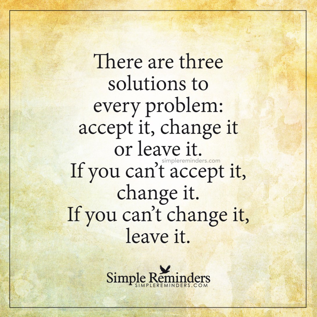 “There are three solutions to every problem: accept it, change it or leave it. If you can’t accept it, change it. If you can’t change it, leave it.” — Unknown Author