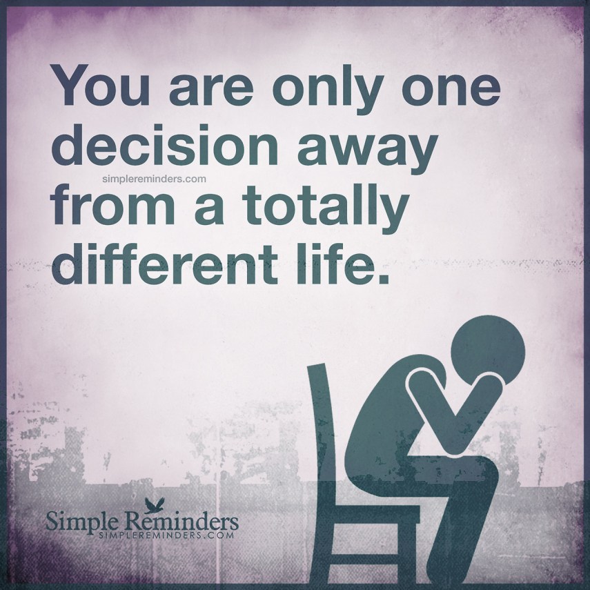 “You are only one decision away from a totally different life.” — Unknown Author