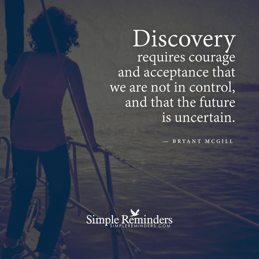 Discovery requires courage and acceptance that we are not in control, and that the future is uncertain. — Bryant McGill