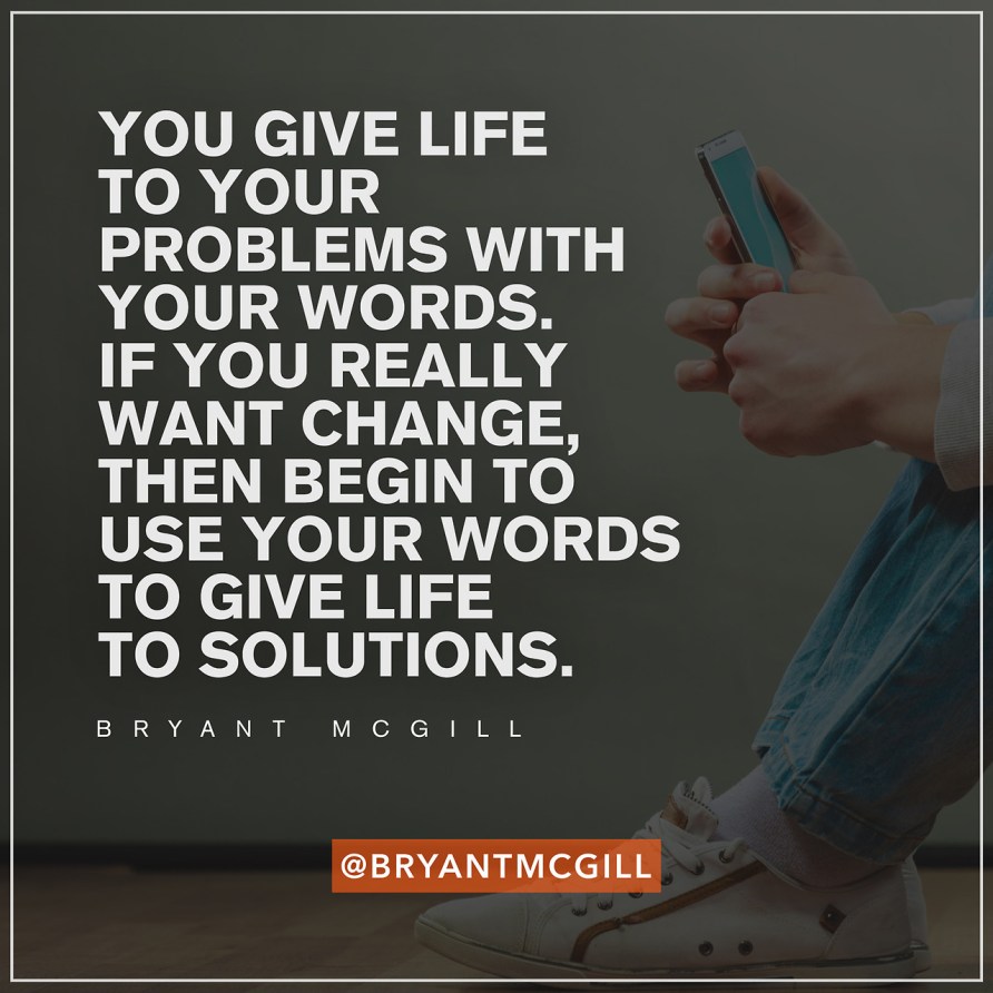 You give life to your problems with your words. If you really want change, then begin to use your words to give life to solutions. — Bryant McGill