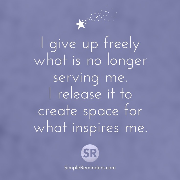 I give up freely what is no longer serving me. I release it to create space for what inspires me.