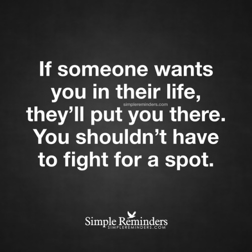 “If someone wants you in their life, they’ll put you there. You shouldn’t have to fight for a spot.” — Unknown Author