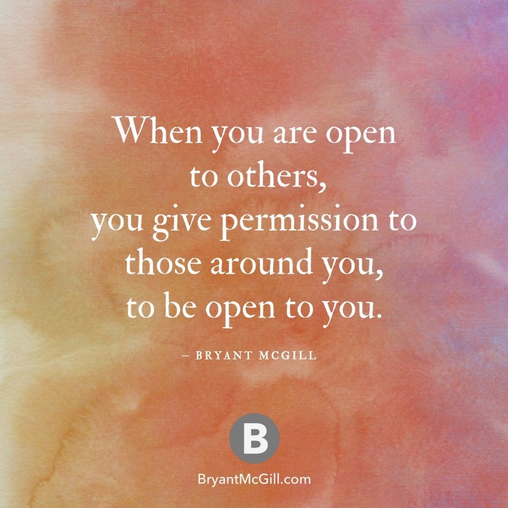 When you are open to others, you give permission to those around you, to be open to you. — Bryant McGill