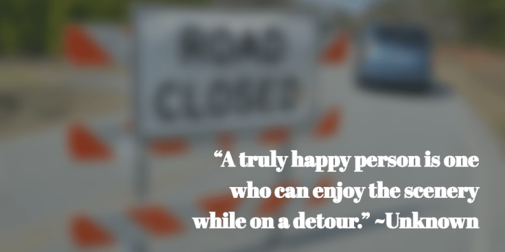 “A truly happy person is one who can enjoy the scenery while on a detour.” ~Unknown