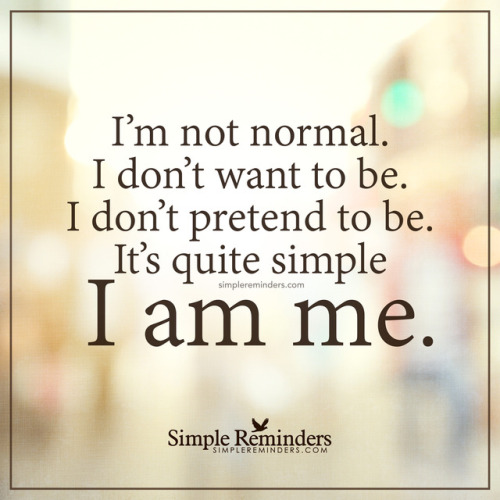 “I’m not normal. I don’t want to be. I don’t pretend to be. It’s quite simple I am me.” — Unknown Author