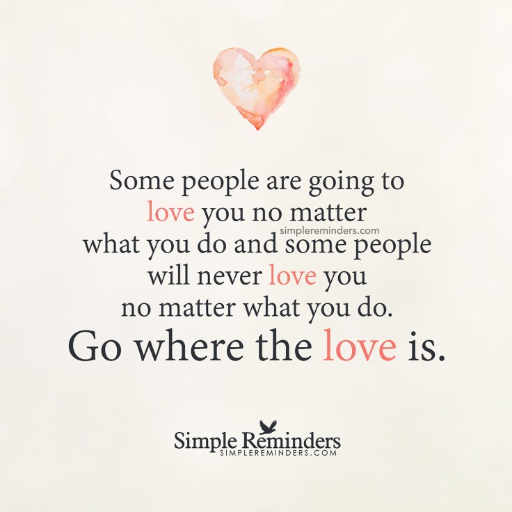 “Some people are going to love you no matter what you do and some people will never love you no matter what you do. Go where the love is.” — Unknown Author