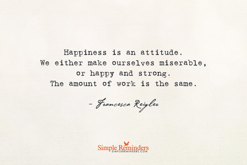 “Happiness is an attitude. We either make ourselves miserable, or happy and strong. The amount of work is the same.” — Francesca Reigler