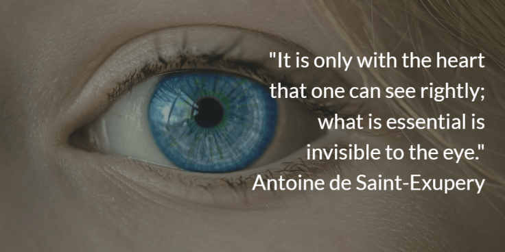 It is only with the heart that one can see rightly; what is essential is invisible to the eye.Antoine de Saint-Exupery