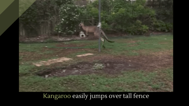 Kangaroos have powerful muscles from all that hopping. It’s hard to imagine just how powerful those muscles are until you see them take a real jump, like this one. Source: Kangaroo easily jumps over tall fence – Holy Kaw!