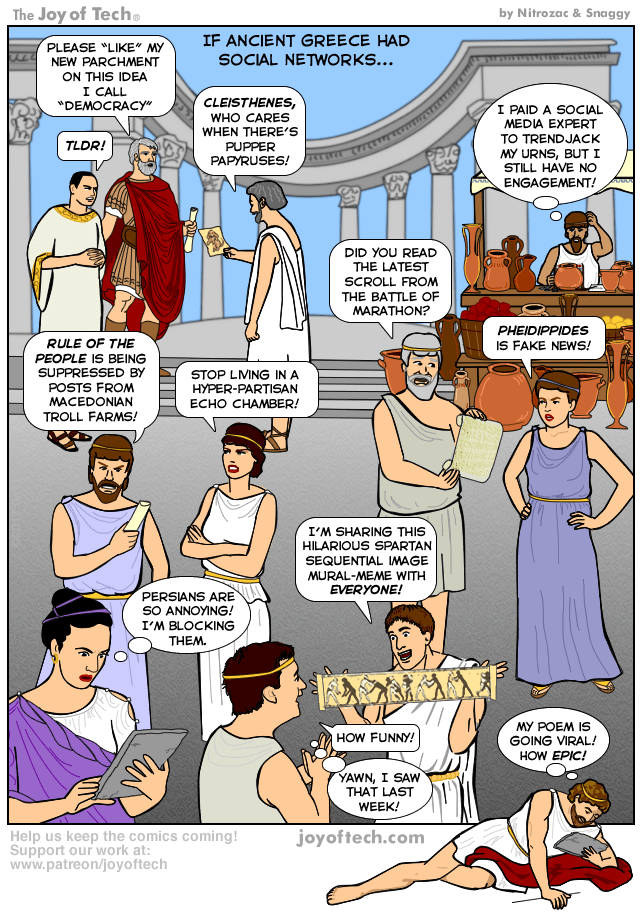 Would they have made democracy? Source: The Joy of Tech comic… If Ancient Greece had social networks…