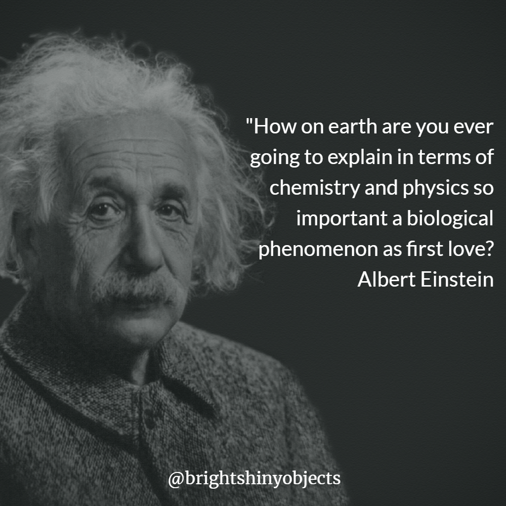 “How on earth are you ever going to explain in terms of chemistry and physics so important a biological phenomenon as first love?—Albert Einstein