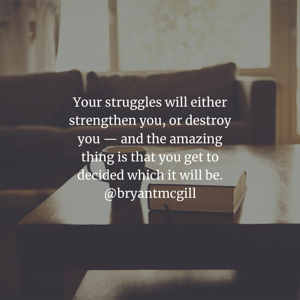 Your struggles will either strengthen you, or destroy you — and the amazing thing is that you get to decided which it will be.