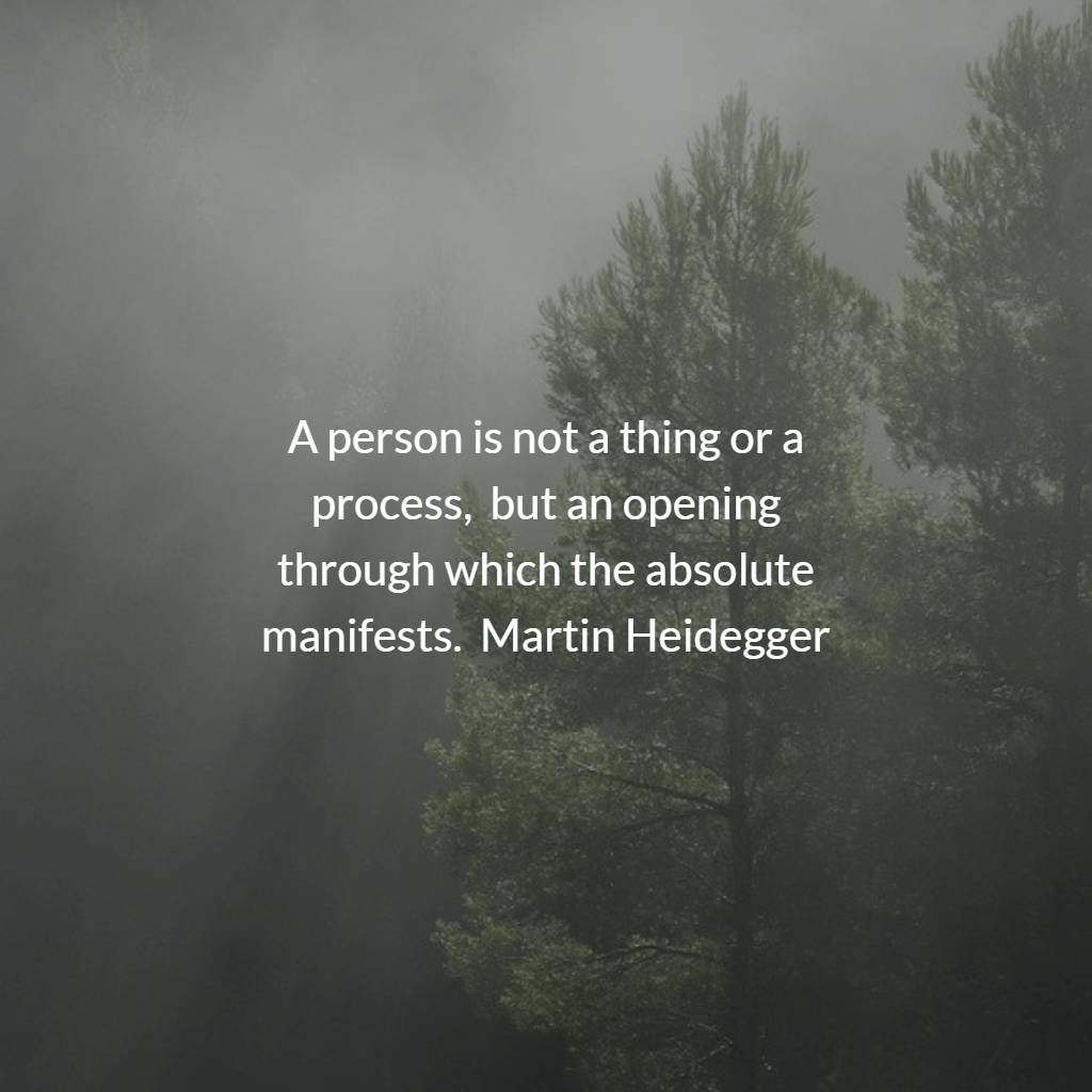 A person is not a thing or a process, but an opening through which the absolute manifests. Martin Heidegger