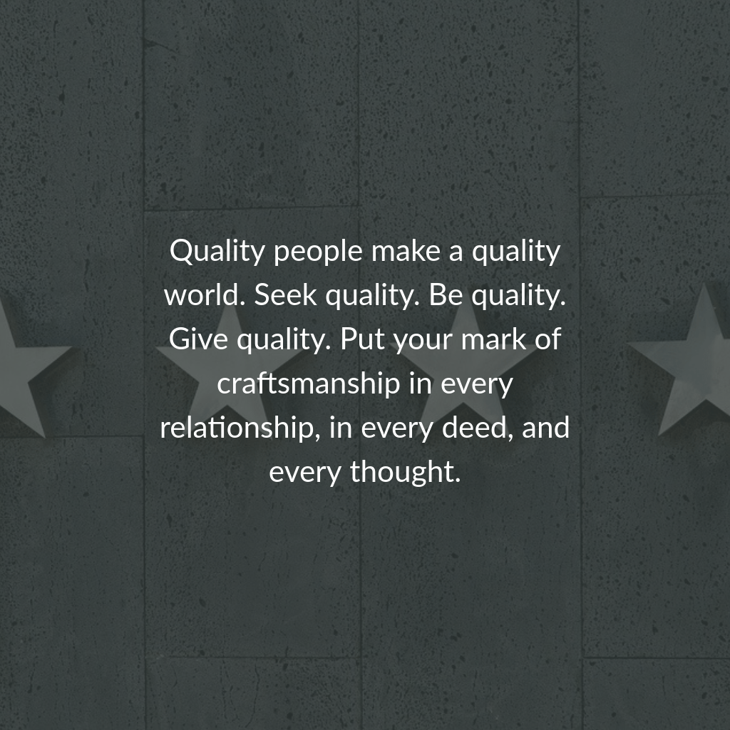 Quality people make a quality world. Seek quality. Be quality. Give quality. Put your mark of craftsmanship in every relationship, in every deed, and every thought.