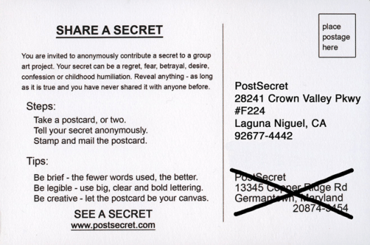 Frank Warren, curator at PostSecret writes:
