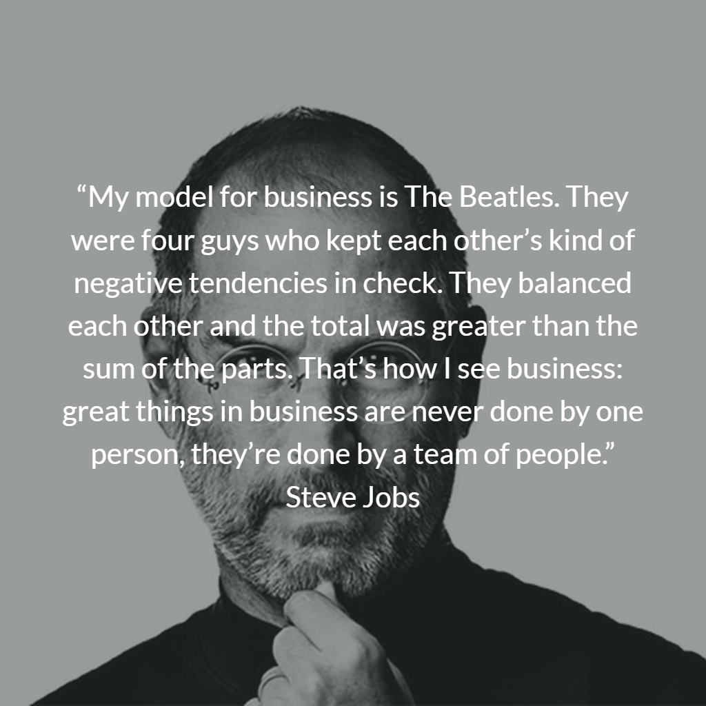 Steve Jobs knew: ‘teamwork makes the dream work’.