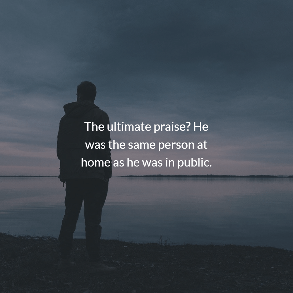 To be the same person at home as you publicly portray to others is a consistency not everyone achieves. Source: The Compliment I Most Want Said at My Funeral