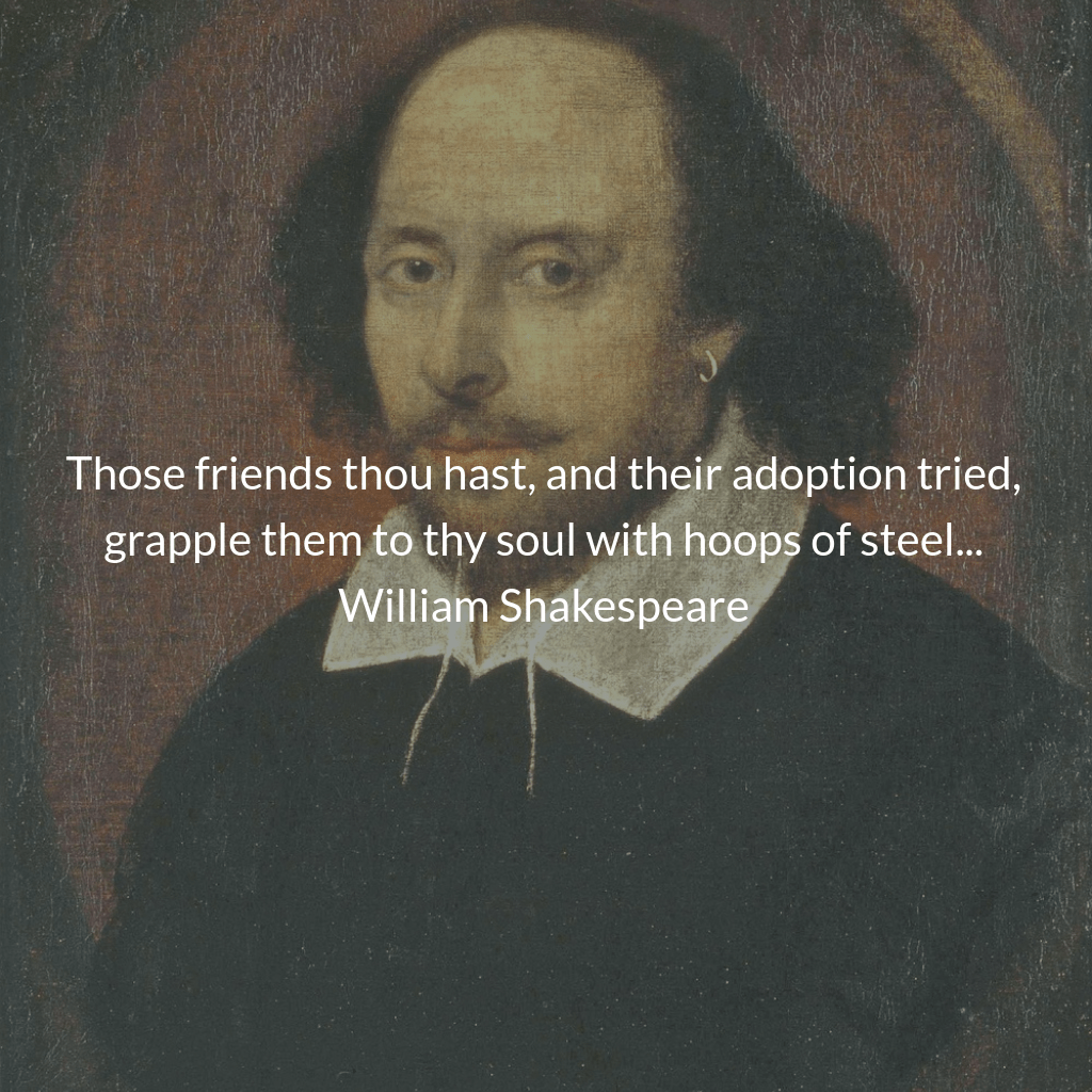 “Those friends thou hast, and their adoption tried, grapple them to thy soul with hoops of steel; But do not dull thy palm with entertainment of each new-hatch’d, unfledg’d comrade.”