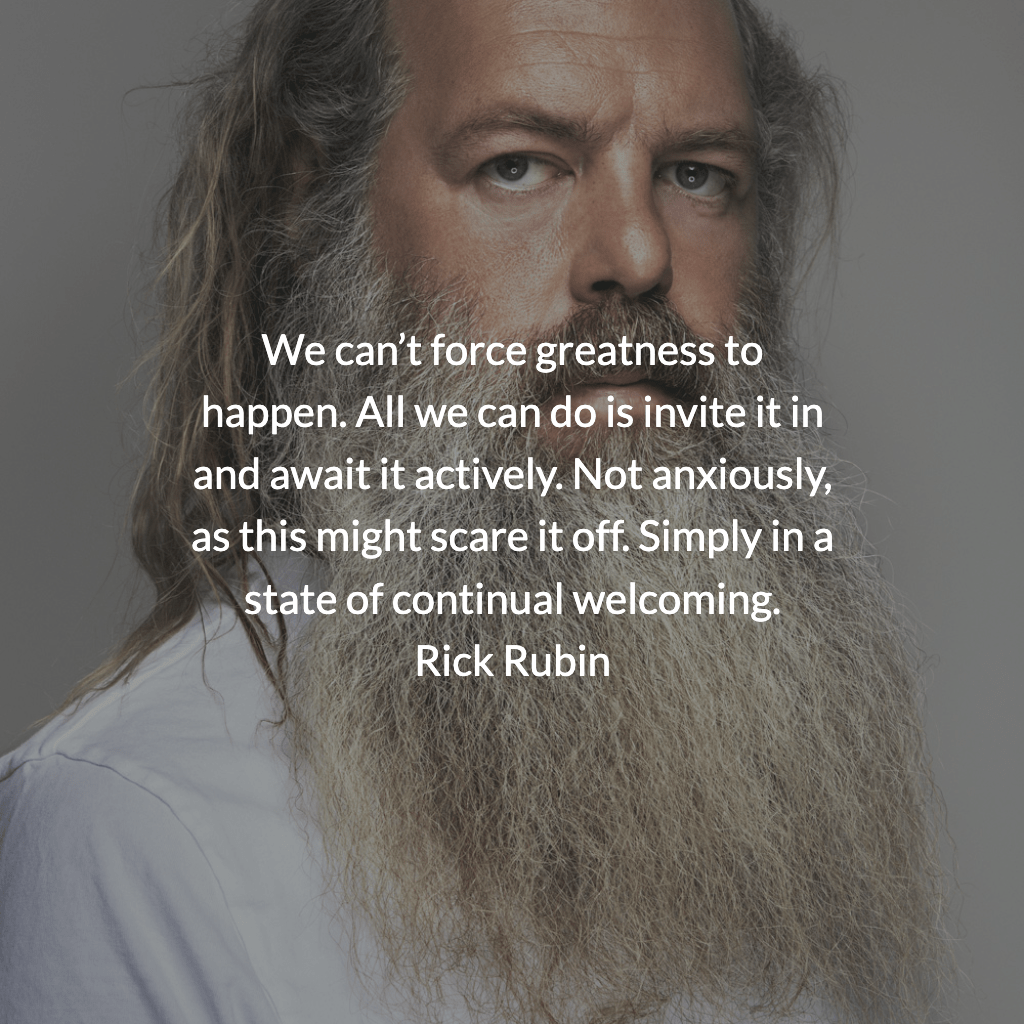 “Time is something that we have no control over. So patience begins with acceptance of natural rhythms. The implied benefit of impatience is to save time by speeding up and skipping ahead of those rhythms. Paradoxically, this ends up taking more time and using more energy. It’s wasted effort. When it comes to the creative process, patience is accepting that the majority of the work we do is out of our control. We can’t force greatness to happen. All we can do is invite it in and await it actively. Not anxiously, as this might scare it off. Simply in a state of continual welcoming.”