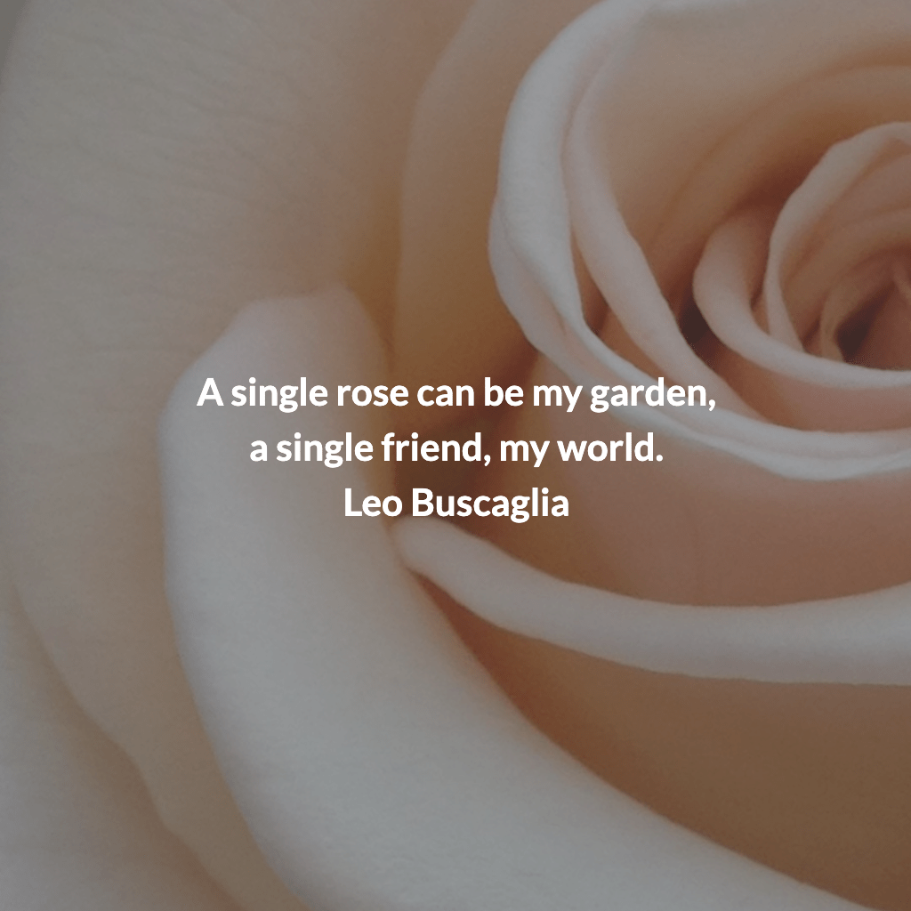 A single rose can be my garden, a single friend my world. Leo Buscaglia