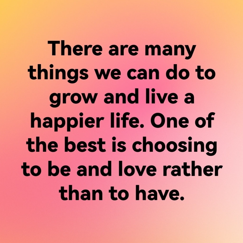 There are many things we can do to grow and live a happier life. One of the best is choosing to be and love rather than to have.
