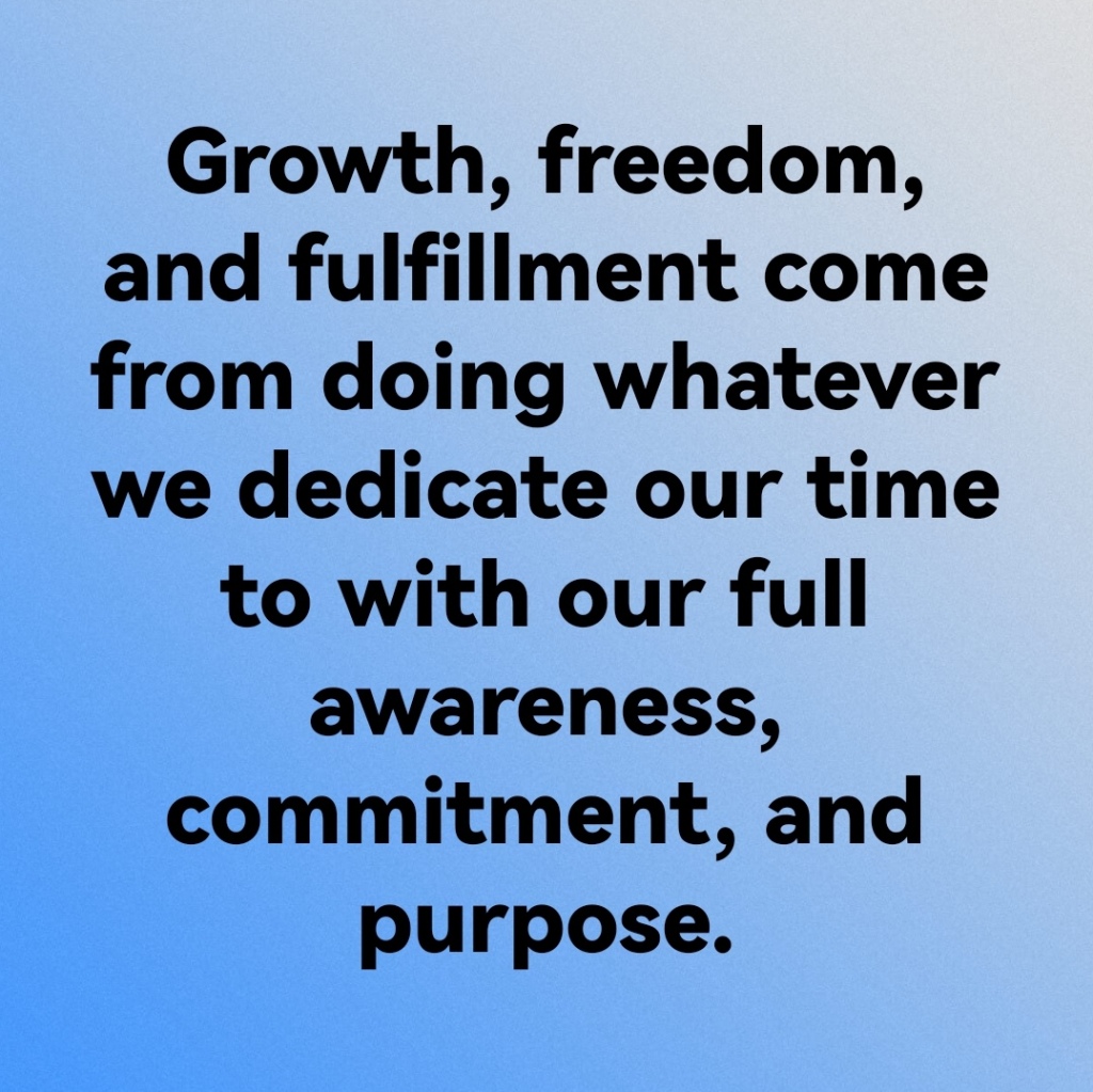Growth, freedom, and fulfillment come from doing whatever we dedicate our time to with our full awareness, commitment, and purpose.