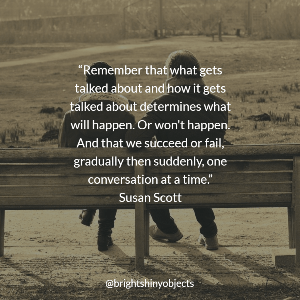 “Susan Scott is a best-selling author and leadership development architect who has enabled top executives worldwide to engage in vibrant dialogue with one another, with their employees, and with their customers for two decades. A recognized thought leader in the global business and education communities, and recipient of the 2008 Stevie award for Entrepreneur of the Year. Susan and her company, Fierce, Inc., are committed to large-scale and individual transformation through the principles set forth in Susan’s books and her company’s customized corporate training programs.”
