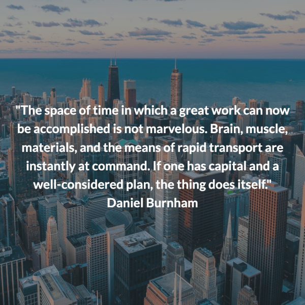 The space of time in which a great work can now be accomplished is not marvelous. Brain, muscle, materials, and the means of rapid transport are instantly at command. If one has capital and a well-considered plan, the thing does itself. But that which is wonderful and which I can scarcely believe, although I have been in the midst of it, is the noble, artistic result which has come from the work of American artists who have had only a few months’ time to prepare those very designs for the great buildings of the Exposition which have actually been executed with little change from the sketches which were presented in February, 1891. A statement at a dinner in New York city (25 March 1893), as quoted in Daniel H. Burnham, Architect, Planner of Cities (1921) by Charles Moore, Vol. 1, Ch. VI, p. 72-73Â Source: Daniel Burnham – Wikiquote